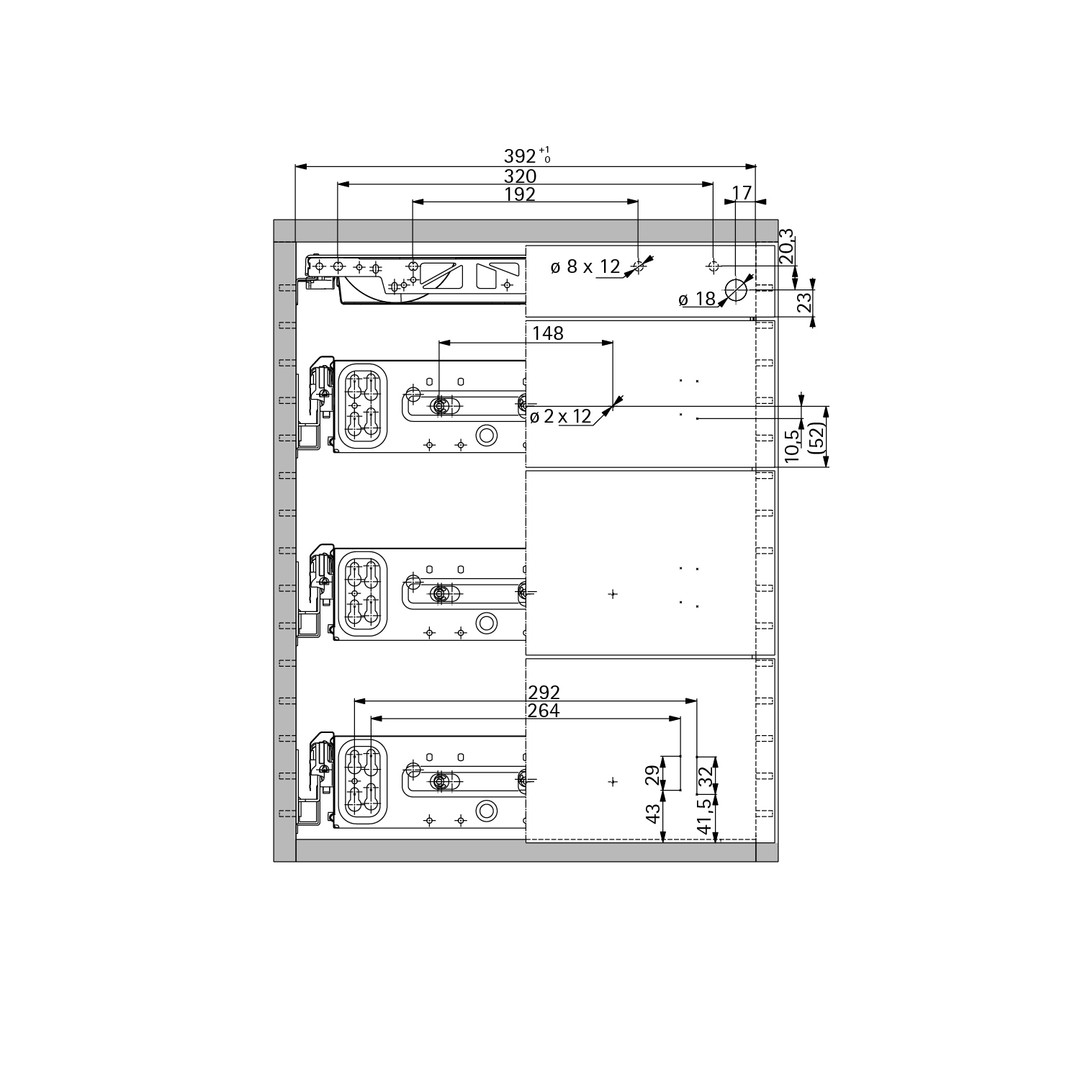 Auszugsführung KA 270, Teilauszug oder Auszugsführung Quadro Duplex 25, Vollauszug (ohne Darstellung)