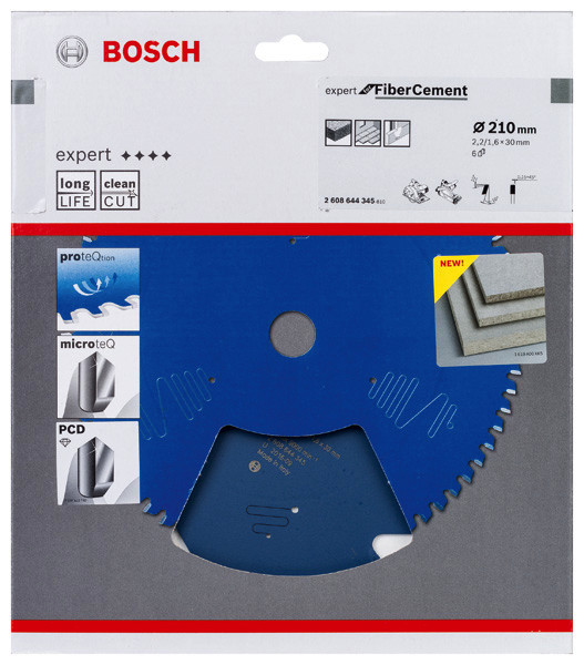 Das Expert for Fibre Cement Kreissägeblatt ist sehr robust beim Schneiden von Faserzement. Es verfügt über PCD-Zähne (Polykristalliner Diamant), wodurch eine extrem hohe Lebensdauer sichergestellt wird. Die Leistung wird durch die Schutzbeschichtung ProteQtion gefördert. Sie verhindert Korrosion, ermöglicht zuverlässiges Schneiden und reduziert dabei Reibung. Das Produkt ist mit Dämpfungsschlitzen für einen besonders ruhigen Lauf, deutlich weniger Geräusche und spürbar geringere Vibration ausgestattet. Das Expert for Fibre Cement Kreissägeblatt verfügt über TCG-Zähne (Triple Chip Grind) für höchste Robustheit und eine lange Lebensdauer.