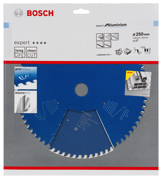 Das Expert for Aluminium Kreissägeblatt macht perfekte Schnitte in Aluminium. Die einzigartigen Extra Hard Microteq-Zähne aus der Eigenfertigung von Bosch werden aus sehr feinem Carbide-Korn hergestellt, das die Lebensdauer und Leistung des Blatts maximiert. Diese Leistung wird durch die Schutzbeschichtung ProteQtion des Blatts unterstützt. Sie verhindert Korrosion, ermöglicht zuverlässiges Schneiden und reduziert dabei die Reibung. Das Produkt ist mit Dämpfungsschlitzen für einen besonders ruhigen Lauf, deutlich weniger Geräusche und spürbar geringere Vibration ausgestattet. Dieses Sägeblatt für Aluminium, Nichteisenmetalle, Kunststoff, Epoxidharz und Holz verwenden. Das Kreissägeblatt Expert for Aluminium ist mit HLTCG-Zähnen (High-Low Triple Chip Ground) versehen, die robust genug für das Schneiden von Aluminium sind.