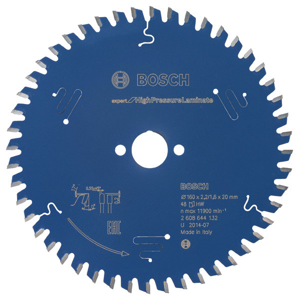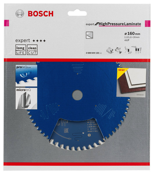 Expert for High Pressure Laminate Kreissägeblatt für das Schneiden von Hochdruck-Schichtpressstoffplatten. Das Blatt ist mit Extra Hard Microteq-Zähnen versehen, die bei Bosch in Eigenproduktion aus hochgradig robustem Carbide-Korn gefertigt werden. Die gute Qualität, die Holzarbeiter erwarten, die Fähigkeit, extreme Bedingungen bei professionellen Konstruktionen zu bewältigen. Die Schutzbeschichtung des Blatts fördert diese hohe Leistung, sie verhindert Korrosion, ermöglicht zuverlässiges Schneiden und reduziert dabei Reibung. Das Produkt ist mit Dämpfungsschlitzen für einen besonders ruhigen Lauf, deutlich weniger Geräusche und spürbar geringere Vibration ausgestattet. Dieses Sägeblatt bei Hochdruck-Schichtpressstoffplatten verwenden. Mit HLTCG-Zähnen (High-Low Triple Chip Ground) ist das Kreissägeblatt Expert for High Pressure Laminate robust auf die Arbeit mit abrasivem Material ausgelegt.