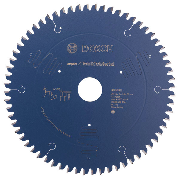 Das Expert for Multi Material Kreissägeblatt macht perfekte zuverlässige Schnitte in viele Materialien. Die einzigartigen besonders harten Microteq-Zähne werden bei Bosch intern aus höchst robustem Carbide-Korn produziert, um eine hohe Leistung sicherzustellen. Das spezielle Carbide und die robuste Zahnform machen das Expert for Multi Material Kreissägeblatt ideal für den universellen Gebrauch in jeder Situation. Die Schutzbeschichtung des Blatts verhindert Korrosion und ermöglicht zuverlässiges Schneiden, während Reibung reduziert wird. Das Produkt ist mit Dämpfungsschlitzen für einen besonders ruhigen Lauf, deutlich weniger Geräusche und spürbar geringere Vibration ausgestattet. Verwenden Sie dieses Sägeblatt für Aluminium, Nichteisenmetalle, Kunststoff, Epoxidharz und Holz. HLTCG-Zähne (High-Low Triple Chip Ground) machen das Expert for Multi Material Kreissägeblatt robust für die Arbeit mit abrasiven Materialien.