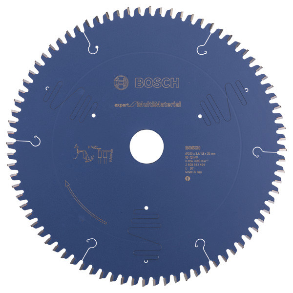 Das Expert for Multi Material Kreissägeblatt macht perfekte zuverlässige Schnitte in viele Materialien. Die einzigartigen besonders harten Microteq-Zähne werden bei Bosch intern aus höchst robustem Carbide-Korn produziert, um eine hohe Leistung sicherzustellen. Das spezielle Carbide und die robuste Zahnform machen das Expert for Multi Material Kreissägeblatt ideal für den universellen Gebrauch in jeder Situation. Die Schutzbeschichtung des Blatts verhindert Korrosion und ermöglicht zuverlässiges Schneiden, während Reibung reduziert wird. Das Produkt ist mit Dämpfungsschlitzen für einen besonders ruhigen Lauf, deutlich weniger Geräusche und spürbar geringere Vibration ausgestattet. Verwenden Sie dieses Sägeblatt für Aluminium, Nichteisenmetalle, Kunststoff, Epoxidharz und Holz. HLTCG-Zähne (High-Low Triple Chip Ground) machen das Expert for Multi Material Kreissägeblatt robust für die Arbeit mit abrasiven Materialien.