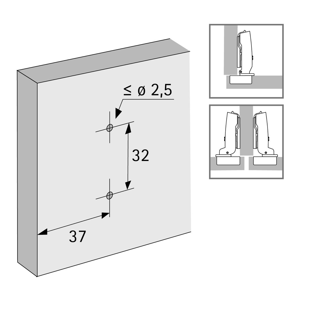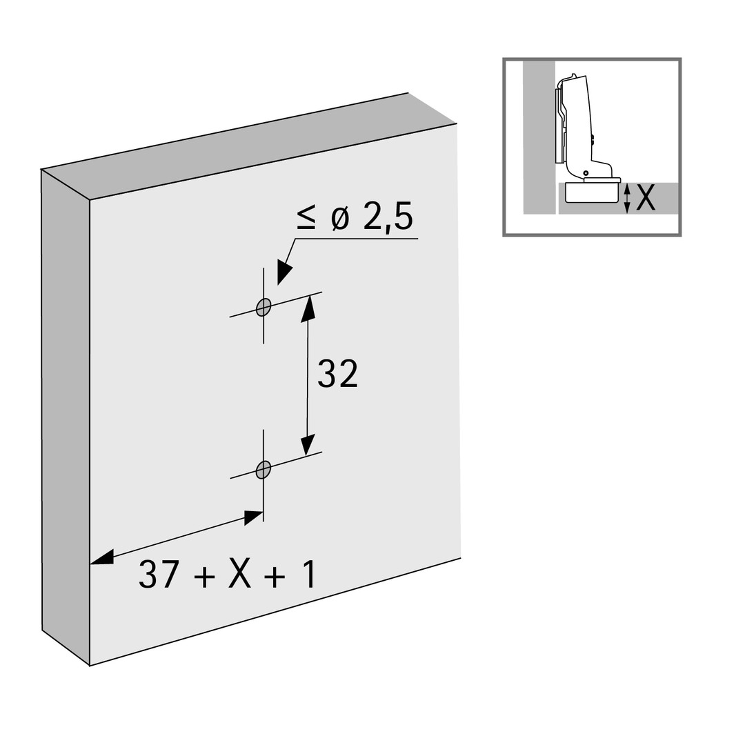• Montage mit Spanplattenschrauben (für Bohrung ø 2,5 mm)
