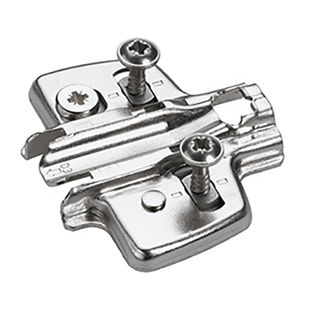 Kreuzmontageplatte mit Direkt-Höhenverstellung, vernickelt, Lochreihe 37 x 32 mm, mit Spanplattenschrauben (für Bohrung ø 2,5 mm), Distanz 0.0 mm
