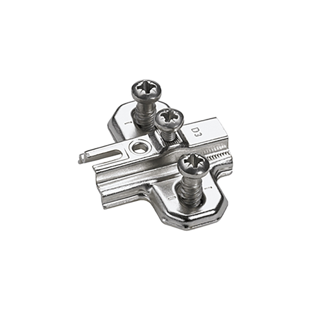 Kreuzmontageplatte mit Langloch-Höhenverstellung, Lochreihe 37 x 32 mm, mit Euroschrauben (für Bohrung ø 5 x 12 mm), Distanz 3.0 mm