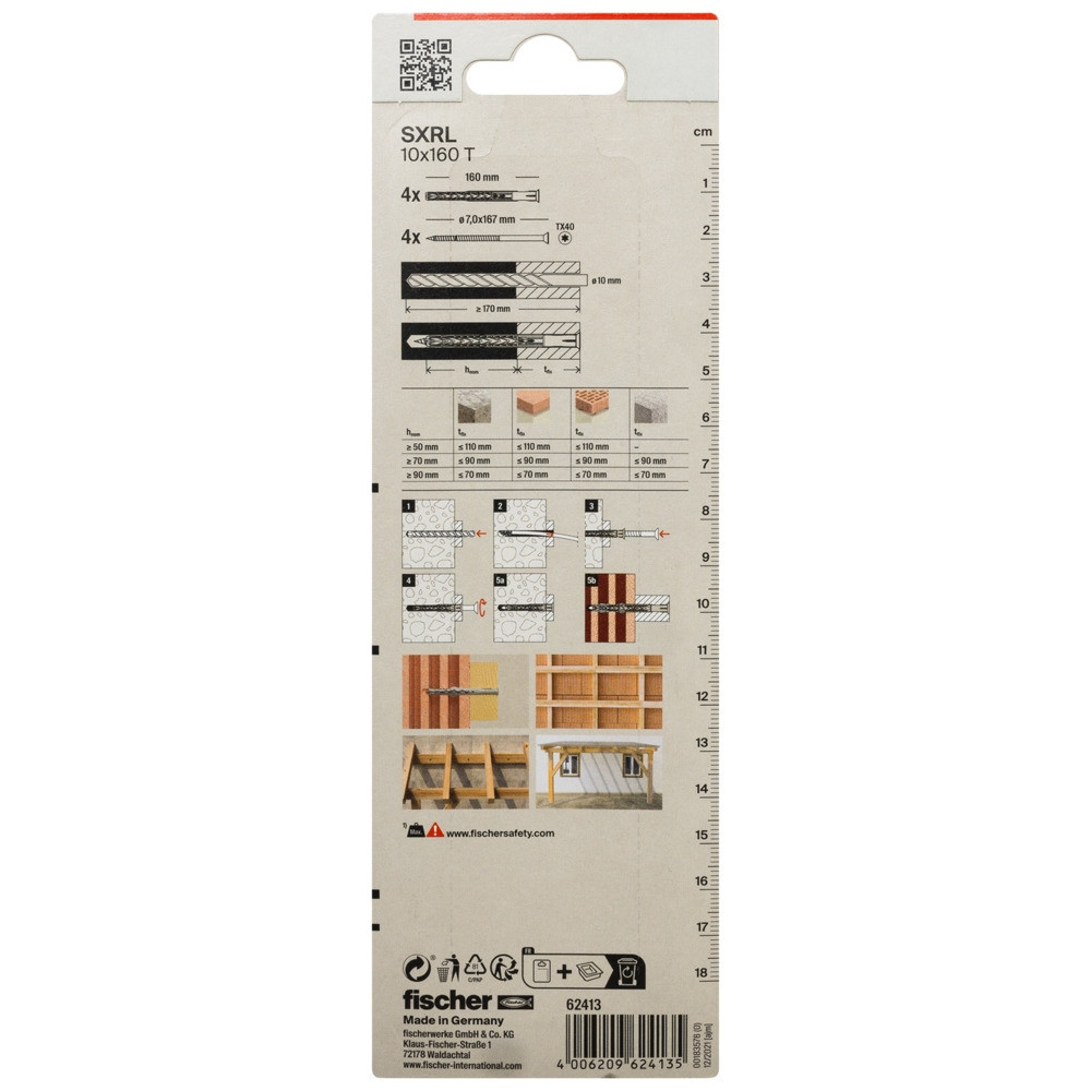 Der fischer Langschaftdübel SXRL-T ist mit der fischer Senkkopfschraube mit TX-Antrieb für Mehrfachbefestigungen von nicht tragenden Systemen in Mauerwerk, Beton und Porenbeton zugelassen. In Lochsteinmauerwerk leiten die zwei Spreizzonen des Dübels gleichmäßig Kraft ein, in Porenbeton und Vollbaustoff vereinen sich diese zu einem langen Spreizelement. Mit der Sicherheitsschraube aus galvanisch verzinktem Stahl ist der Langschaftdübel für Befestigungen im Innenbereich wie Fenstern, Garderoben, Hängeschränken oder TV-Konsolen geeignet.