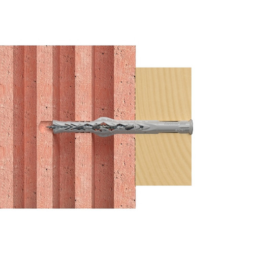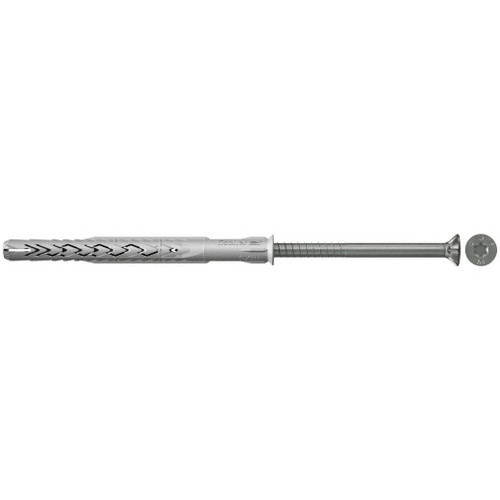 Der fischer Langschaftdübel SXRL-T A4 ist mit der fischer Senkkopfschraube mit TX50-Antrieb für Mehrfachbefestigungen von nicht tragenden Systemen in Mauerwerk, Beton und Porenbeton zugelassen. In Lochsteinmauerwerk leiten die zwei Spreizzonen des Dübels gleichmäßig Kraft ein, in Porenbeton und Vollbaustoff vereinen sich diese zu einem langen Spreizelement. Mit der Sicherheitsschraube aus nicht rostendem Stahl ist der Langschaftdübel für Befestigungen im Außenbereich wie Fassaden-, Decken- und Dachunterkonstruktionen geeignet.