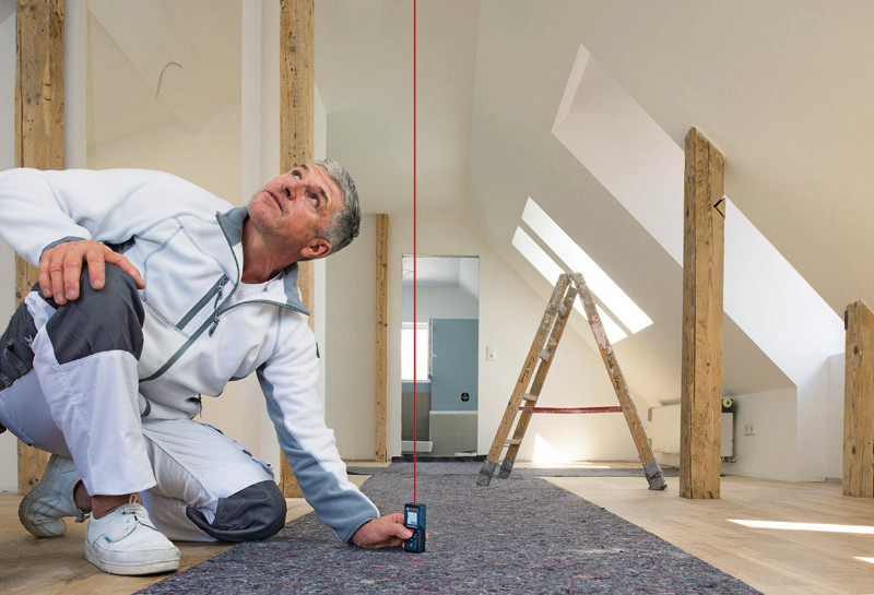 Laser-Entfernungsmesser GLM 40, Der Laser-Entfernungsmesser GLM 40 Professional bietet eine Vielzahl von Messmodi in einem einzigen, kompakten Gerät. Dieses intuitive Werkzeug bietet alle wichtigen Messmodi in einem: Längenmessung, Flächenermittlung und Volumenberechnung sowie indirekte Höhenmessungen. Der gut ablesbare, beleuchtete Bildschirm zeigt die letzten drei Messergebnisse zur schnellen Referenz an. Und mit der Speicherfunktion für die letzten 10 Messungen macht der Laser-Entfernungsmesser die Arbeit effizienter. Dieses Werkzeug ist ideal für Innenausbauarbeiten wie Elektrik, Fliesen, Tischlerarbeiten, Trockenbau, Malerarbeiten und Heizung/Lüftung/Klima. Neben einem integrierten Staub- und Spritzwasserschutz verfügt der Laser-Entfernungsmesser GLM 40 Professional außerdem über ein robustes, stoßfestes Gehäuse, welches ihn bei Stürzen aus bis zu 1 Meter Höhe vor Schäden schützt. Herstellerzertifikat. Schutztasche. 2 x 1,5 V LR03-Batterie (AAA)