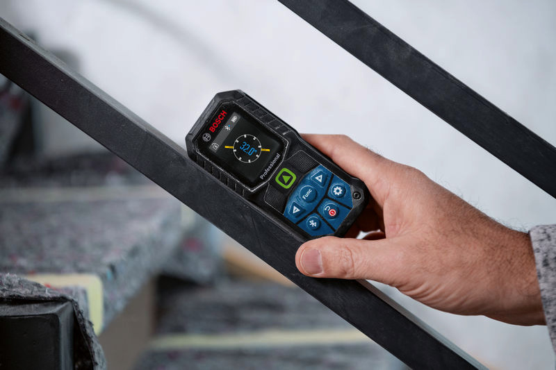 Laser-Entfernungsmesser GLM 50-27 CG, Der Laser-Entfernungsmesser GLM 50-27 CG Professional bietet eine hervorragende Sichtbarkeit des Laserpunkts, ein sehr langlebiges Design und eine schnelle Dokumentation. Da sein grüner Laserpunkt im Vergleich zu einem roten Laserpunkt besser zu sehen ist, eignet er sich besonders zum Messen großer Distanzen bei hellen Innenraumbedingungen. Dank der Kombination aus einem IP 65-zertifizierten Design und einem stoßabsorbierenden Gehäuse mit Gummiummantelung hält es Stürze aus 1,5 Meter Höhe, sogar auf harten Beton und auf rauen Baustellen aus. Bluetooth®-Konnektivität und die Bosch MeasureOn App gewährleisten eine zügige Dokumentation und blitzschnelle Übertragung der Messergebnisse. Dieser Laser-Entfernungsmesser eignet sich optimal zum Dokumentieren, Berechnen des Materialbedarfs, Berechnen von Räumen und Wandflächen und Positionieren von Befestigungselementen, und ist somit ideal für Architekten, Elektriker und viele andere professionelle Anwender. Das Gerät gibt sowohl ein Akustik- als auch Vibrationssignal zur Bestätigung einer erfolgreichen Messung und bietet eine längere Akkulaufzeit (im Vergleich zum Vorgänger GLM 50 C Professional). Schutztasche. Trageschlaufe. BA 3.7V 1.0Ah A und USB-C®-Kabel (1 608 M00 C43)