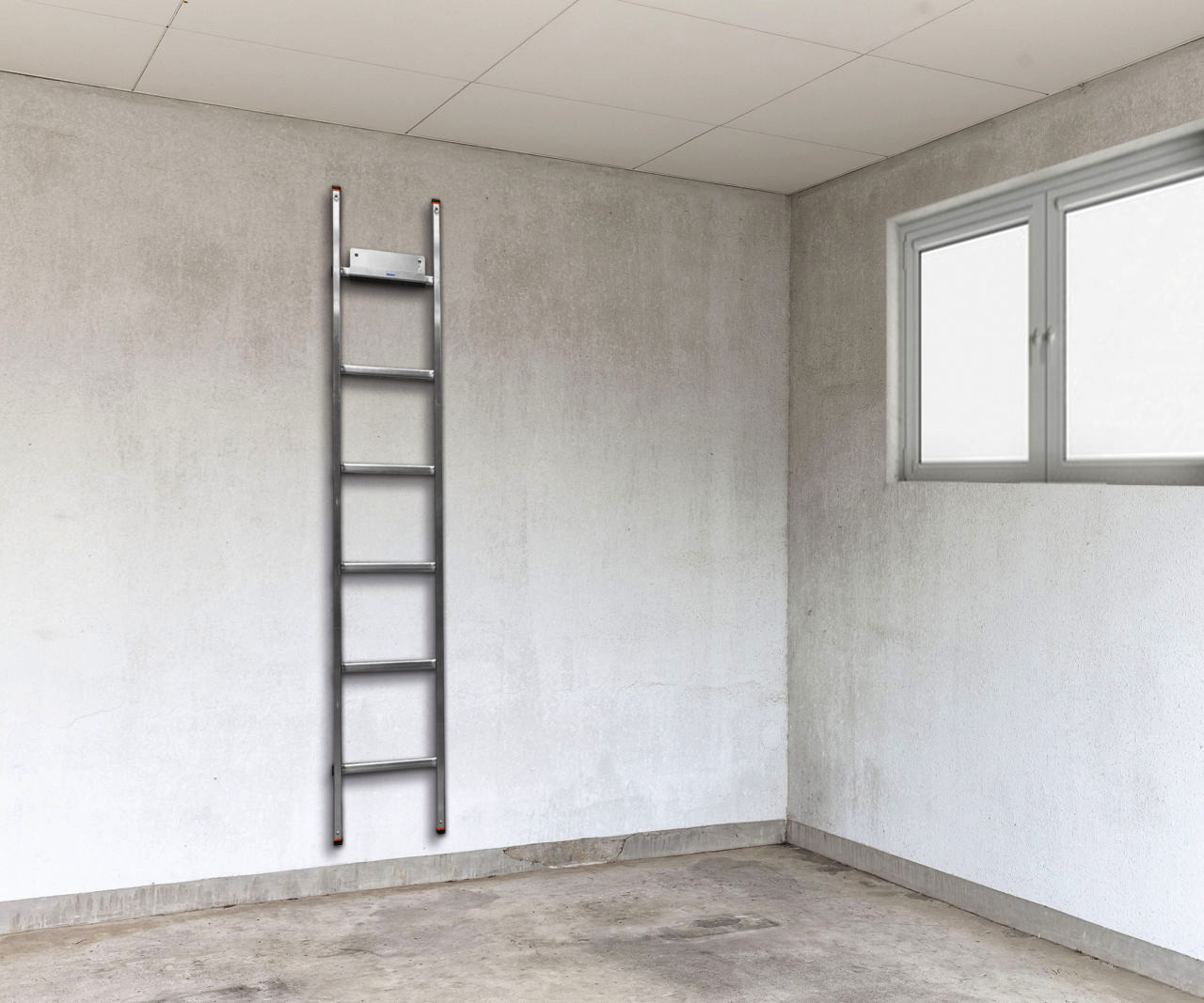 + Für sichere und platzsparende Aufbewahrung von Leitern an der Wand