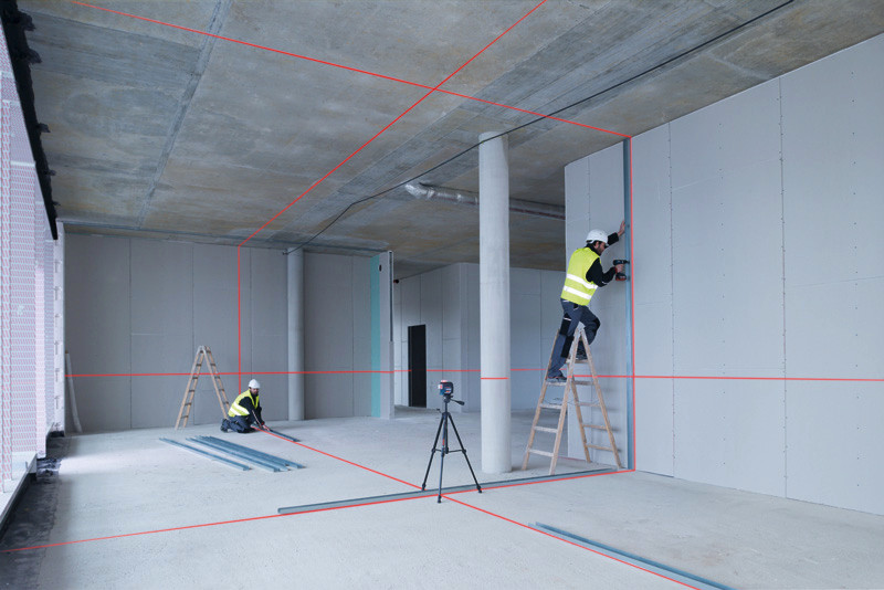Linienlaser GLL 3-80 C, Der Linienlaser GLL 3-80 C Professional wird einfach angeschlossen und sorgt über die Projektion von 3 x 360°-Linien für exzellente Sichtbarkeit. Dank innovativer CAL Guard-Überwachung und Bluetooth®-Verbindung zur Smartphone-App sind der ferngesteuerte Einsatz, die kontaktlose Justierung sowie hohe Präzision möglich. Leistungsstarke Dioden garantieren starke Sichtbarkeit, während dank 3 x 360°-Linien für die gleichzeitige Durchführung von horizontalen und vertikalen Nivellierarbeiten und somit für hohe Arbeitseffizienz gesorgt wird. Dieser Linienlaser wurde für den Bau von Böden, die Montage von Fenstern, das Anbringen von Regalen, das Verlegen von Abflussrohren, den Rohbau für Trockenbauwände und das Verlegen von Fliesen entwickelt. Dank Dual Power Source-Technologie des GLL 3-80 C Professional ist ein Betrieb sowohl mit 12-V-Li-Ion-Akku als auch mit Standard-Alkalinebatterien möglich, ein Plus an Flexibilität. Das Gerät ist in der Lage, sich auf nicht planaren Oberflächen in weniger als 4 Sekunden mit einer exzellenten Genauigkeit von ± 0,2 mm/m*/** um bis zu +/- 4° selbst zu nivellieren und verfügt bei Verwendung des optionalen Empfängers LR 6 oder LR 7 Professional über eine Reichweite von bis zu 120 m. Dieser Linienlaser ist kompakt, einfach zu bedienen und extrem robust. AA1 Alkaline Akku-Adapter (1 608 M00 C1B). Laserzieltafel. Tasche. 4 x 1,5 V-LR6-Batterie (AA)