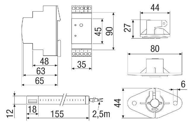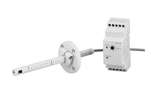Luftstromwächter mit Fernfühler, Messbereich 1 m/s bis 20 m/s, AC 230 V / 50/60 Hz, max. 2 A (5 A)