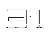 zur mechanischen WC-Spülauslösung bei MEPA UP-Spülkästen, Edelstahl/Stahl, 220 x 150 x 11 mm, Betätigung von vorne oder von oben, für aufgesetzte Montage, EasyConnect-System für werkzeuglose Montage der Betätigungsplatte, bestehend aus Befestigungsrahmen, 1x Drückerstange (2-Mengen Varianten 2x Drückerstangen), 2x Distanzbolzen und Befestigungsmaterial