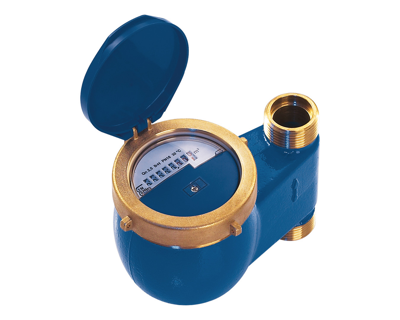 für vertikalen Einbau, Mehrstrahl-Trockenläufer, Gehäuse Messing beschichtet, zulässiger Betriebsdruck PB 16 bar, zulässige Betriebstemperatur, Kaltwasser 30 °C, Medium Trinkwasser, Zulassung nach MID (R80H/R50V-Q3-2,5-10 cbm/h) (R80H Q3 16 cbm/h)