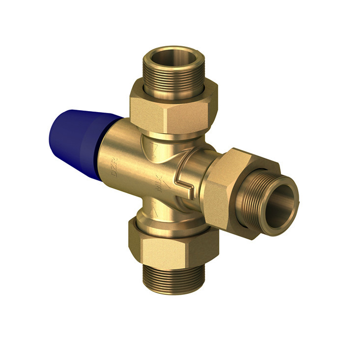 mit thermostatischem Verteilventil, zur Realisierung einer temperaturgeführten Rücklaufeinschichtung, Vermeidung von Temperaturdurchmischung im Pufferspeicher im Zirkulationsbetrieb, Installation im Rücklauf zwischen Frischwasserstation und Pufferspeicher