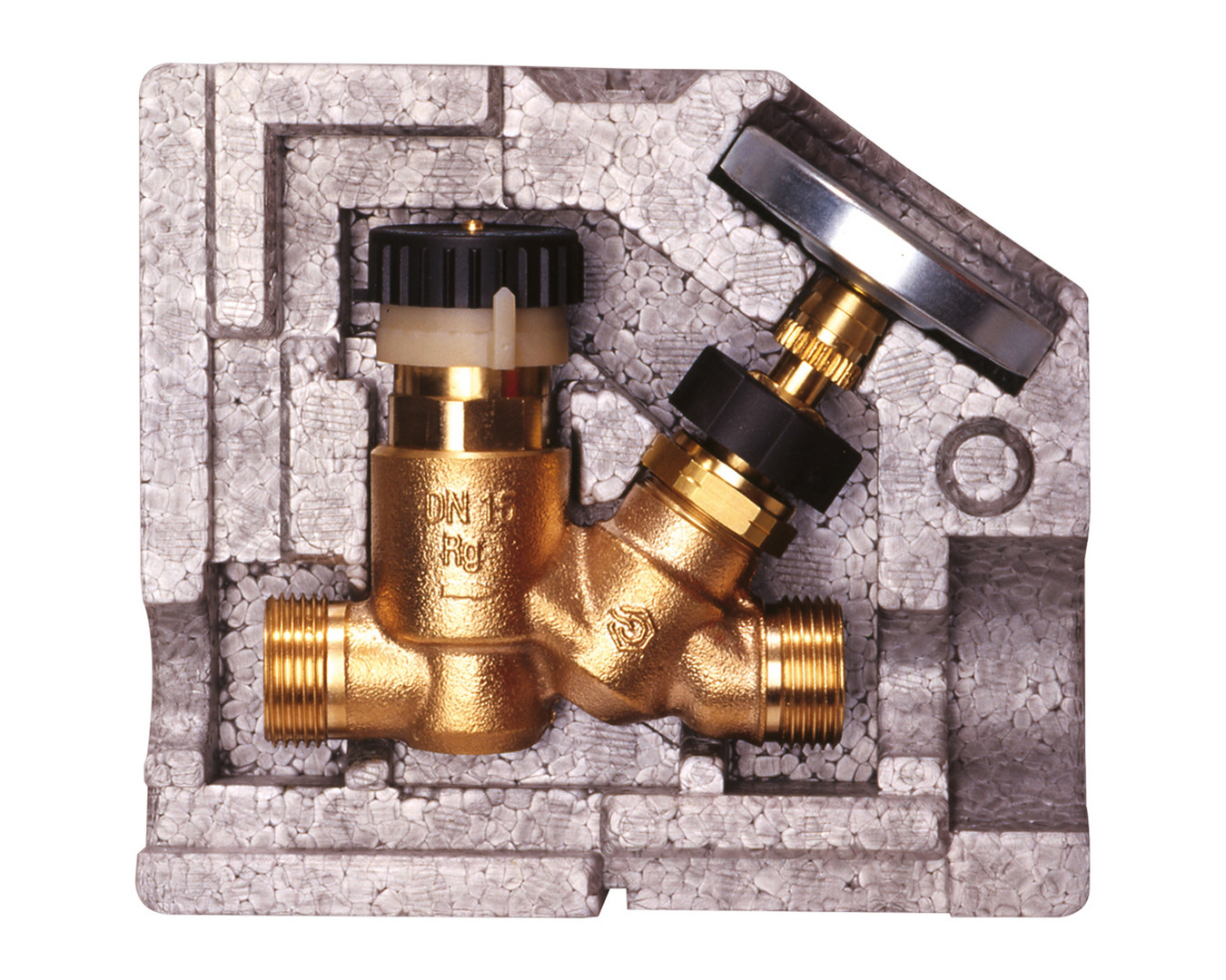 mit Isolierung, Rotguss, zul. Betriebsdruck PB 10 bar, zul. Betriebstemperatur TB 90 °C, Isolierung und Thermometer sind im Lieferumfang enthalten