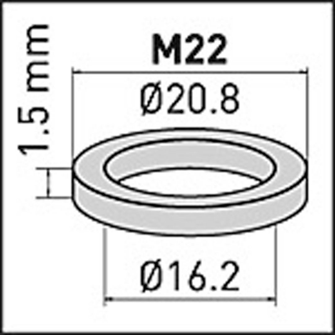 Silikondichtung für SLC AC Strahlregler ist für eine Anschlussgrösse M22 geeignet, diese hat eine Höhe von 1,5 mm und zwei Durchmesser von 20,8 und 16 mm