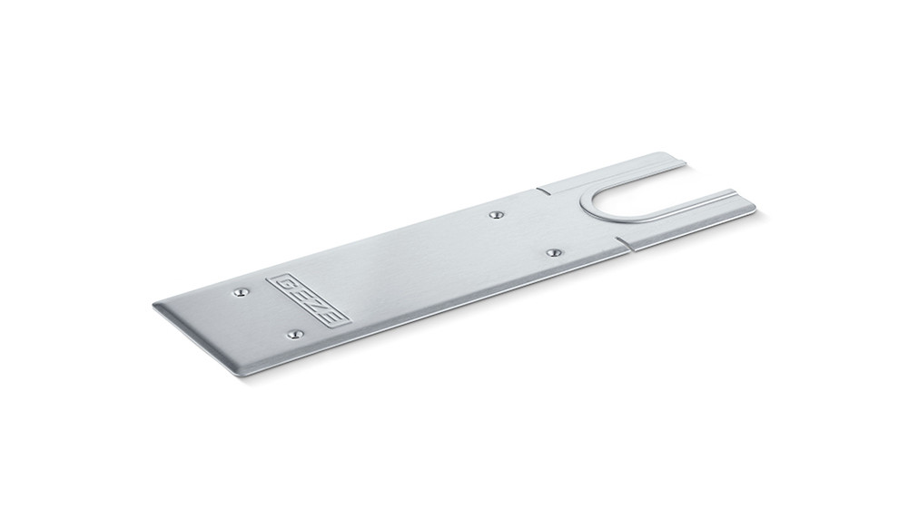 GEZE Deckplatte TS 500 NV; Ausführung: für Boden-Türschließer; Material: Edelstahl; Befestigungsart: zum Anschrauben; Einsatzbereich: Objekttür; Basis: Deckplatte; Länge: 298mm; Breite: 105mm; DIN-Richtung: DIN Links-Rechts; Oberfläche: rostfrei; Farbton: edelstahl