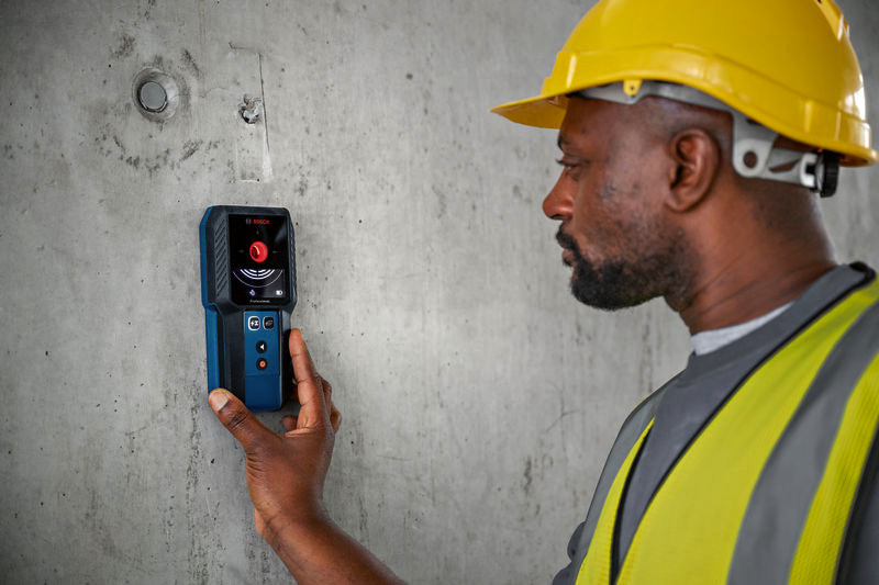 Ortungsgerät GMS 120-27, Beim Bohren in der Wand willst du die Arbeit erledigen und dabei sicher sein, dass du nicht auf ein Hindernis stößt. Unser Ortungsgerät GMS 120-27 Professional erlaubt eine unkomplizierte und intuitive Ortung von Objekten. Die Ortungsergebnisse werden über eine Signalanzeige auf dem Display und das farbcodierte Markierungsloch angezeigt. Das anwenderfreundliche Ortungsgerät bietet eine einfache Betriebsartauswahl, und durch das Markierungsloch lässt sich exakt markieren, wo Objekte geortet wurden. Der robuste GMS 120-27 wurde für raue Baustellen entwickelt, und ist mit Staub- und Spritzwasserschutz gemäß IP54 und einem stoßdämmenden Gummigehäuse ausgestattet. Unser Ortungsgerät GMS 120-27 Professional hilft beim Orten und Lokalisieren von Metallen, Stromleitungen und Holzbalken in Trockenbauwänden. Die Lokalisierung von Objekten in Wänden vor dem Bohren sorgt für sichereres Arbeiten, insbesondere bei Renovierungsarbeiten, wenn Schränke, Einbauküchen, Waschbecken, Kessel und Heizungsanlagen montiert oder Klima- und Sprinkleranlagen installiert werden. Dieses Ortungsgerät bestimmt nicht nur die Mitte des georteten Objekts, sondern zeigt auch seine Materialeigenschaften wie magnetisches oder nichtmagnetisches Metall, eine stromführende Leitung oder nichtmetallisches Material an. Tasche. 2 x 1,5 V LR6-Batterie (AA)