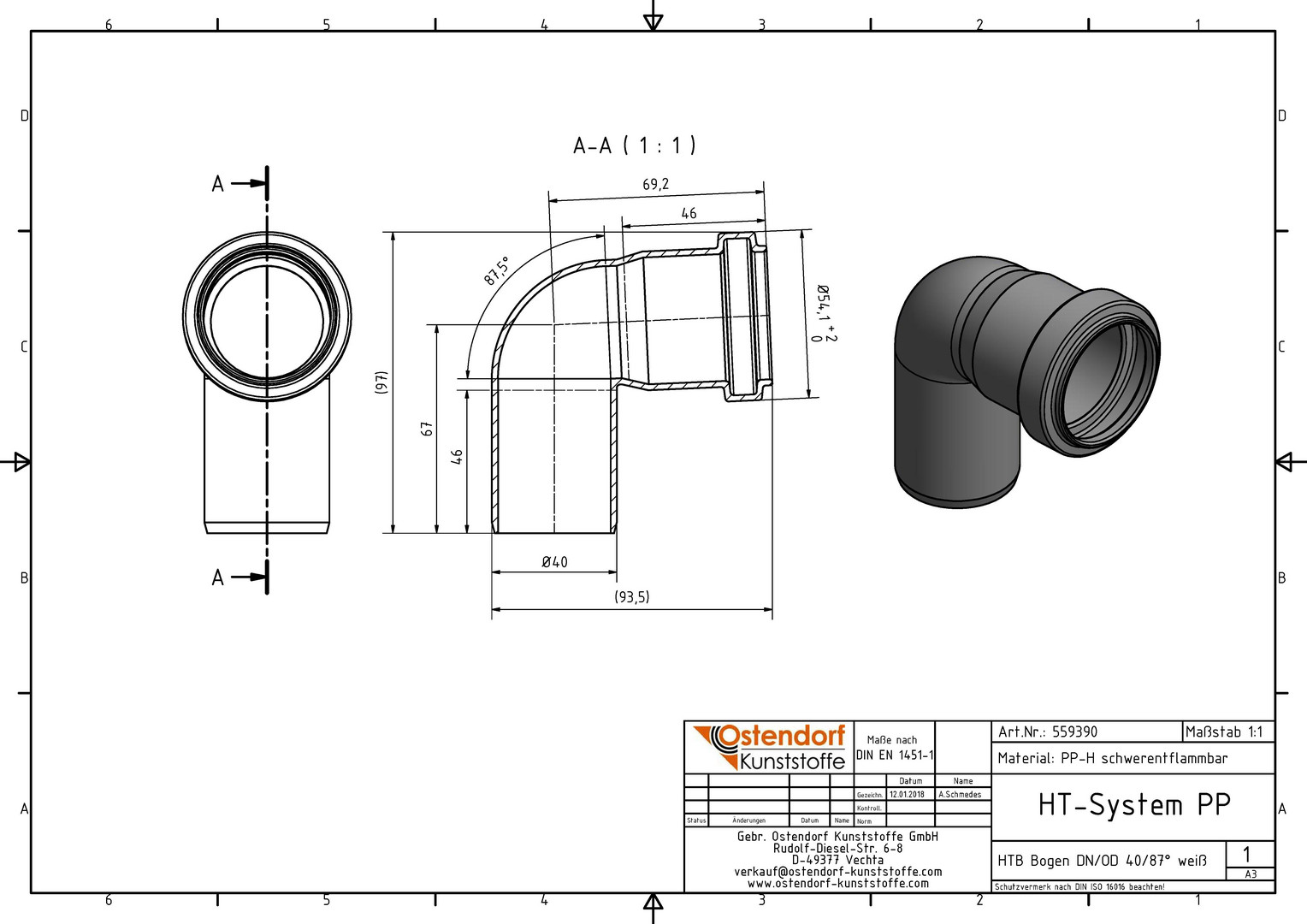 Ostendorf HT Bogen B DN 40, 87,5Grad, weiß