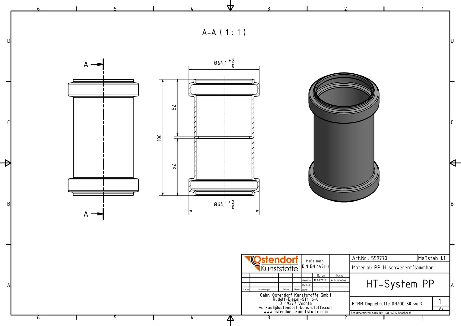 Ostendorf HT Doppelmuffe MM DN 50, weiß