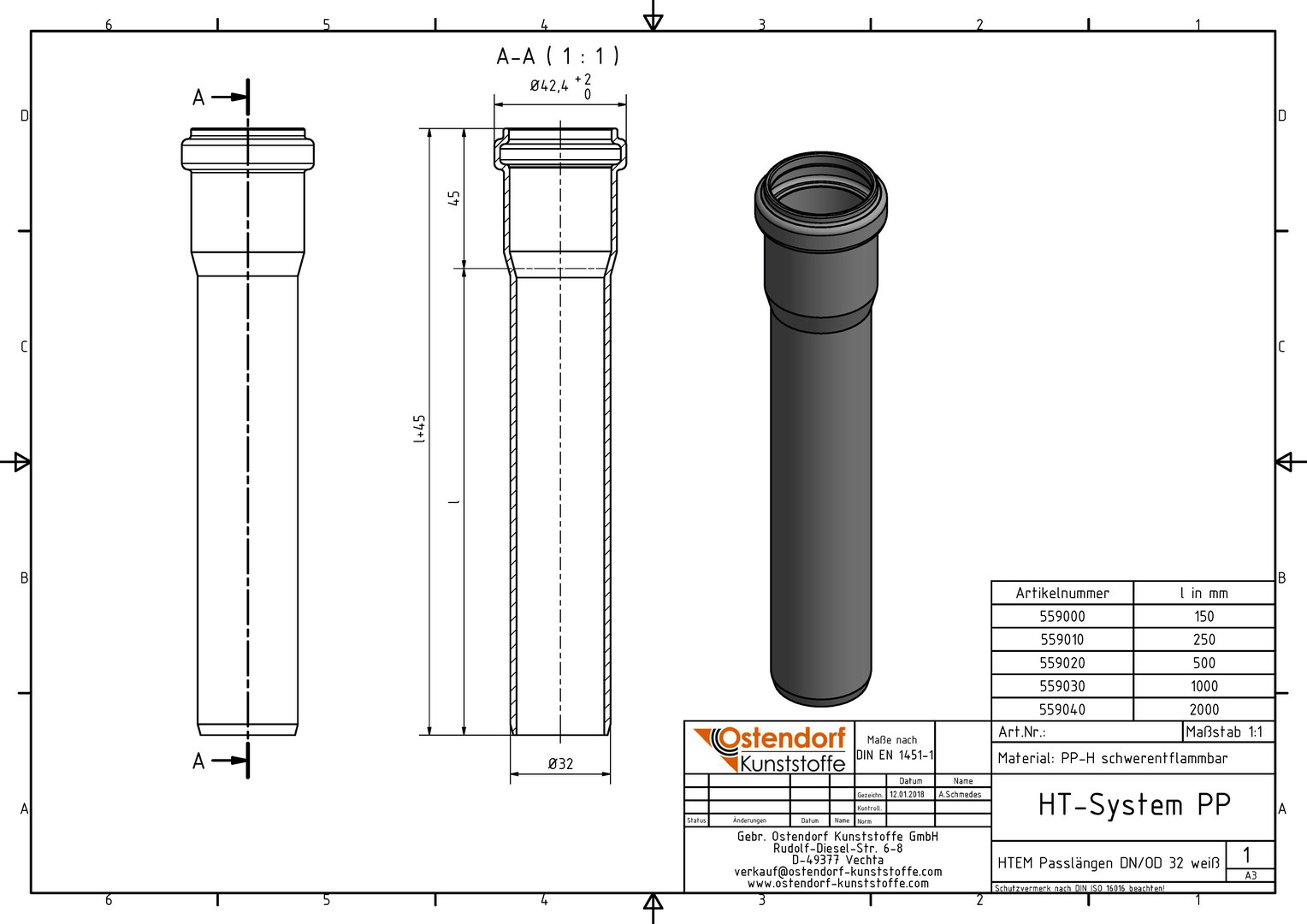 Ostendorf HT Rohr EM DN 32, weiß, 500 mm