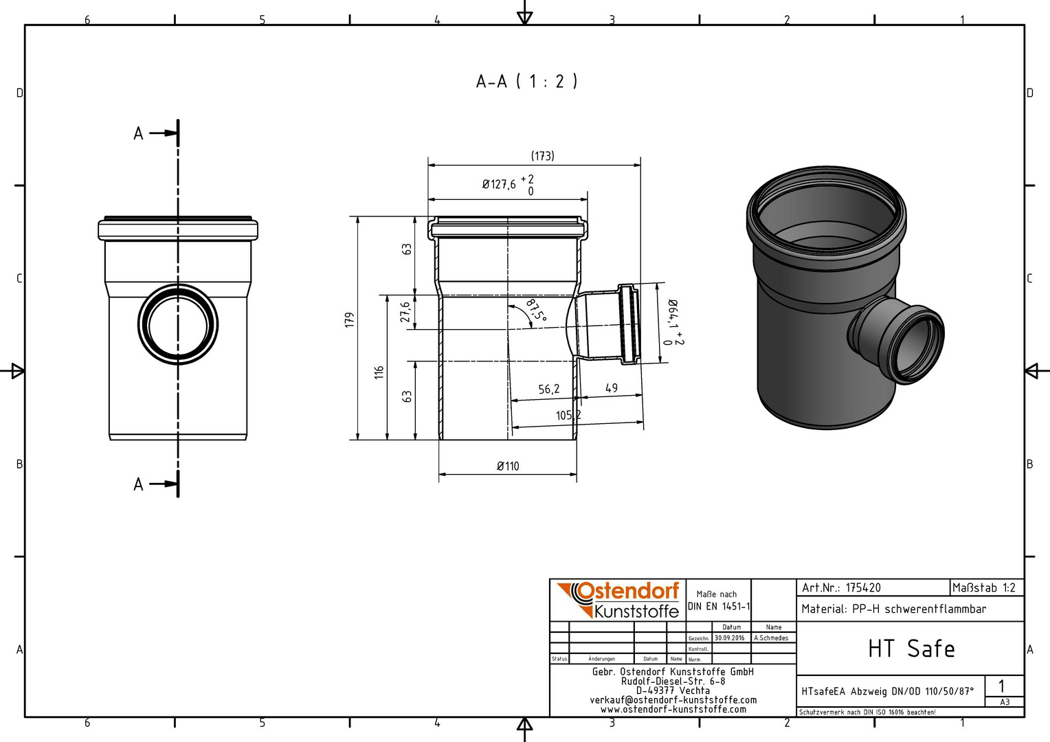 Ostendorf HTsafe Abzweig EA DN/OD 110/50 x 87,5°