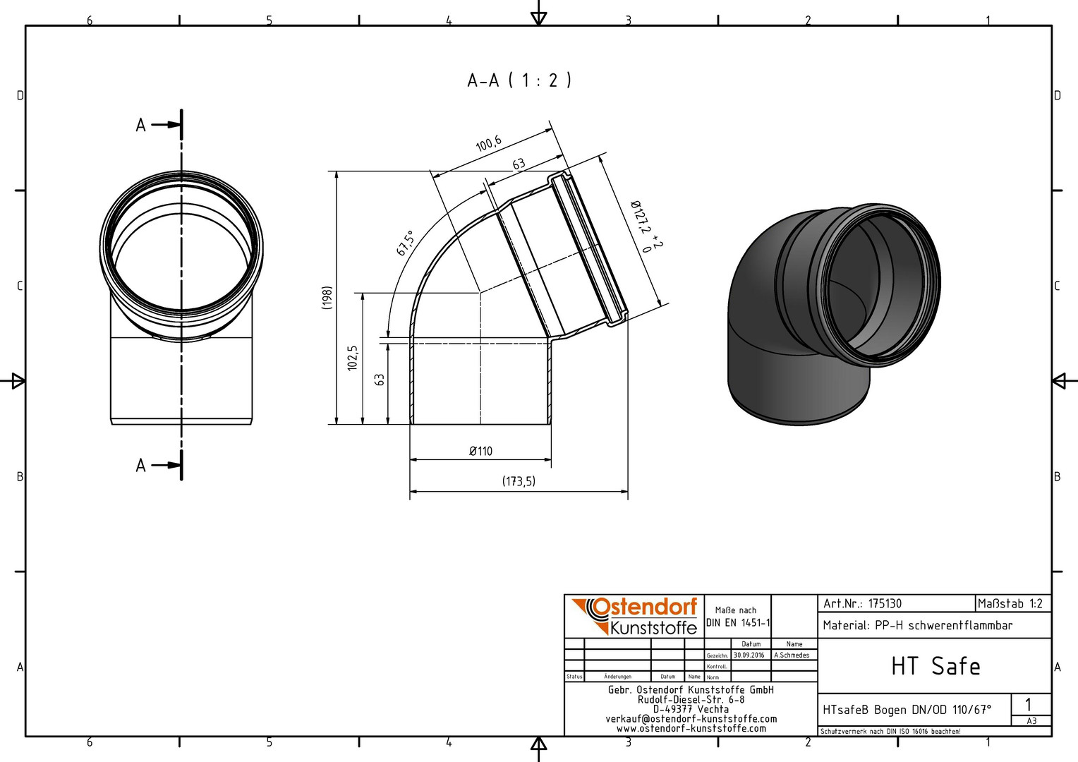 Ostendorf HTsafe Bogen B DN/OD 110, 67,5°