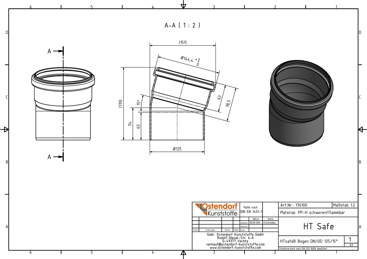 Ostendorf HTsafe Bogen B DN/OD 125, 15°