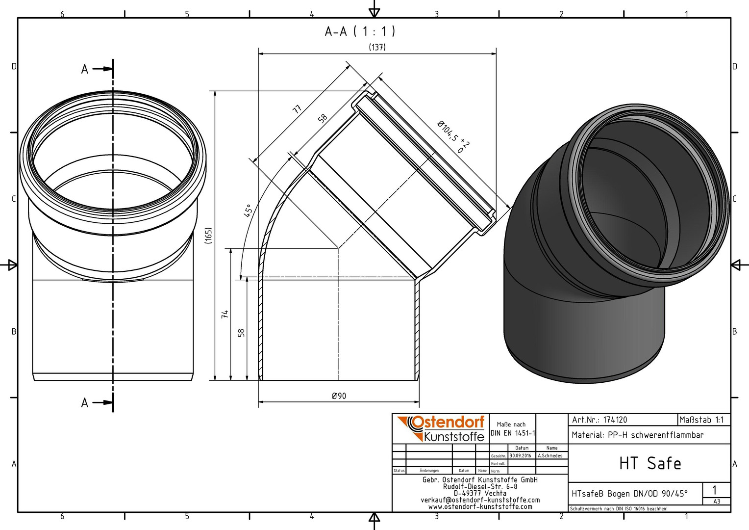 Ostendorf HTsafe Bogen B DN/OD 90, 45°