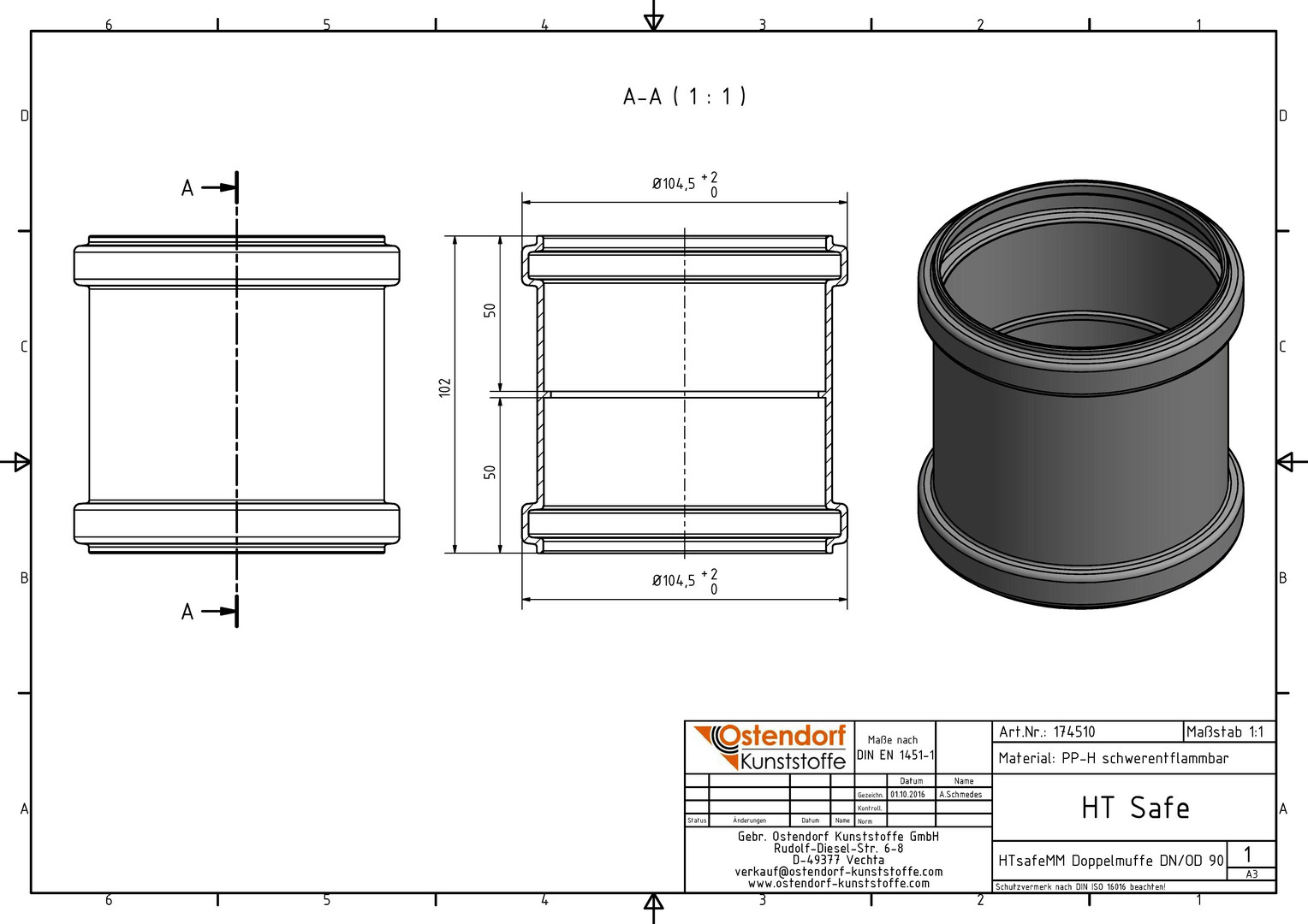 Ostendorf HTsafe Doppelmuffe MM DN/OD 90