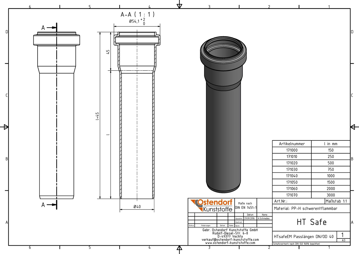 Ostendorf HTsafe Rohr EM DN/OD 40, 750 mm