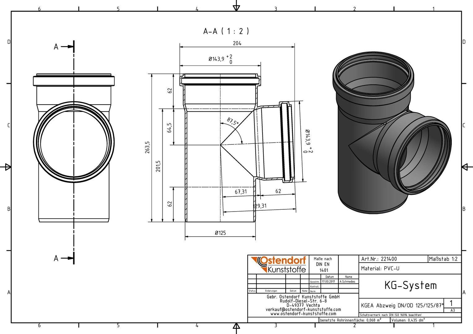 Ostendorf KG Abzweig EA DN/OD 125/125 x 87,5°
