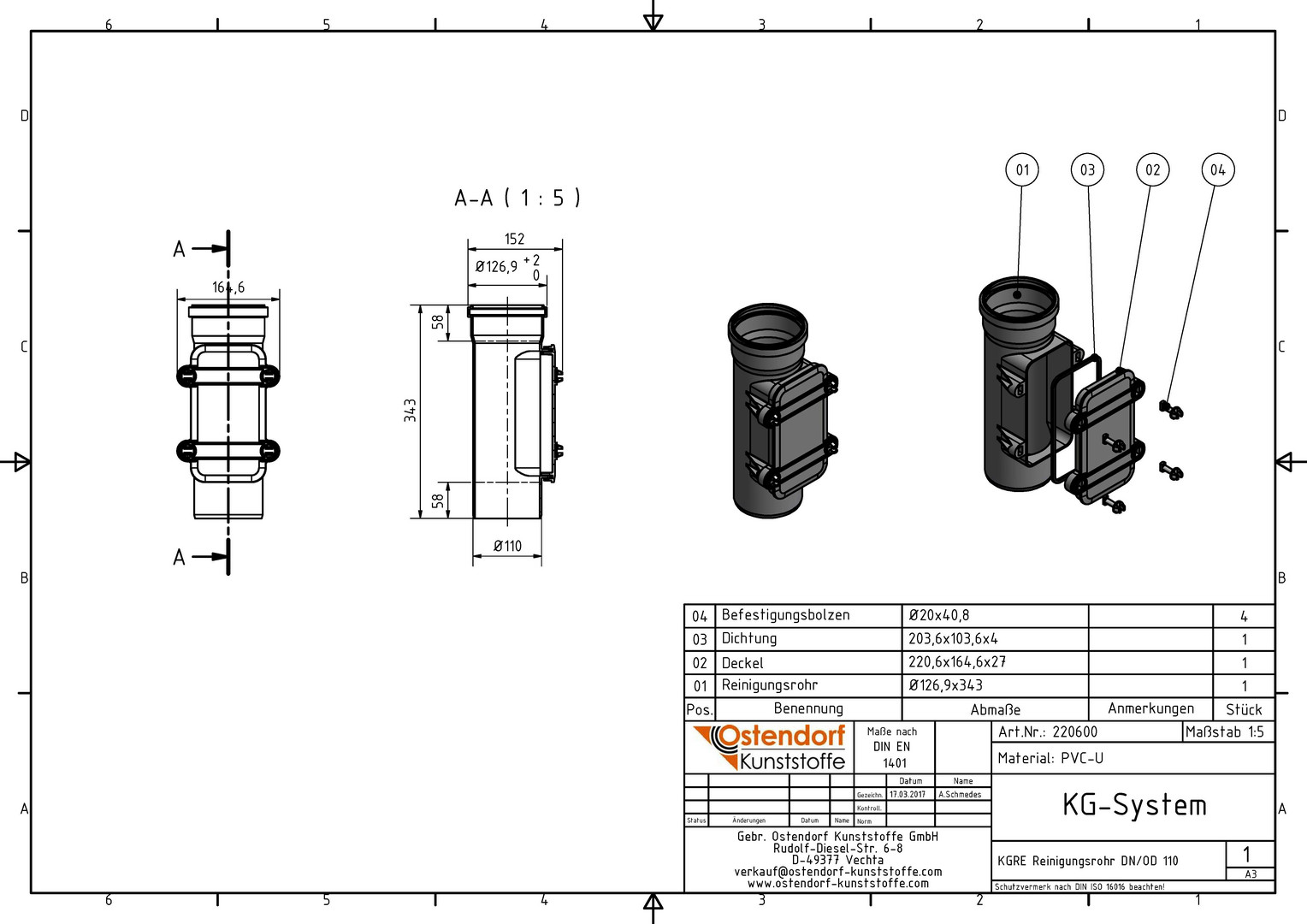 Ostendorf KG Reinigungsrohr RE DN/OD 110, Deckel eckig