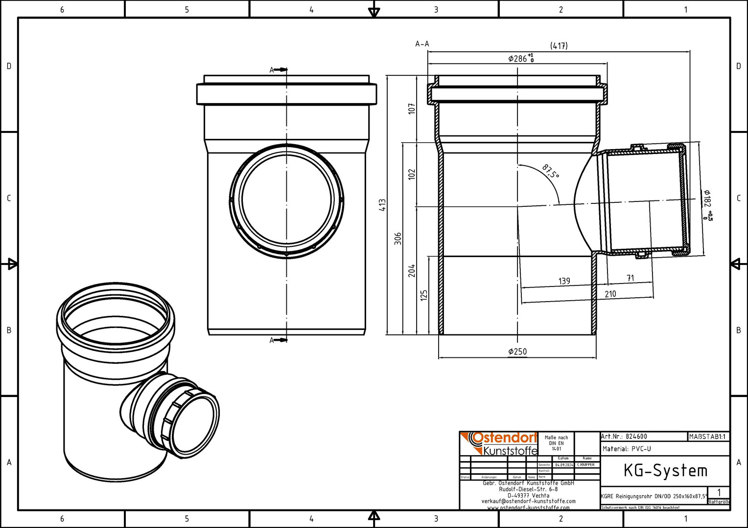 Ostendorf KG Reinigungsrohr RE DN/OD 250, Deckel rund