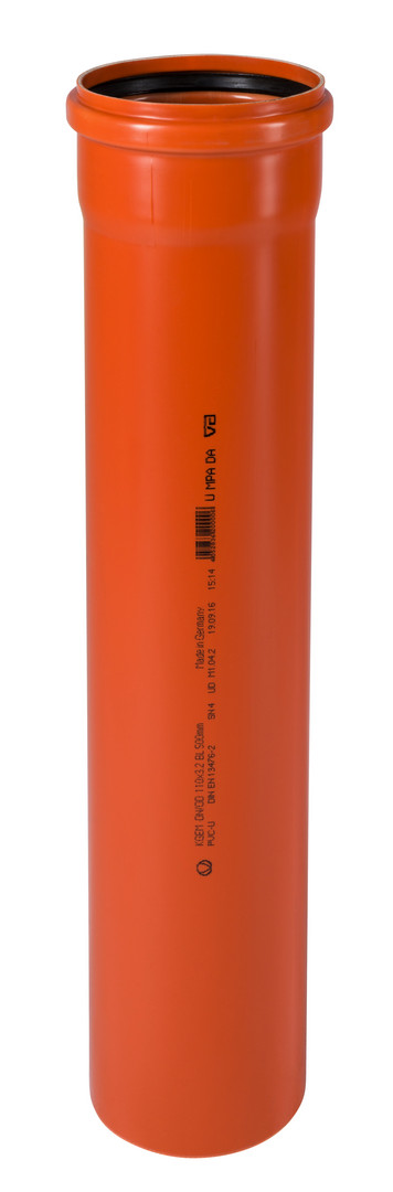 aus PVC-U (Polyvinylchlorid, weichmacherfrei), Co-extrudierte Rohre DIN EN 13476-2, Anwendung für erdverlegte Abwasserkanäle und -leitungen, Montage DIN EN 1610, DIN EN 476, DIN 1986-100, orangebraun RAL 8023, Dichtung Werkseitig eingelegte SBR-Dichtung nach DIN EN 681 bei SN 4 Coex Rohren und allen Formteilen, für öl- und fetthaltige Abwässer sind NBR-Dichtringe zu verwenden, Chemische Beständigkeit Ableitung von aggressiven Medien im Bereich pH 1 bis pH 13, Rohraufbau Co-extrudierte Rohre mit mehrschichtigem Wandaufbau