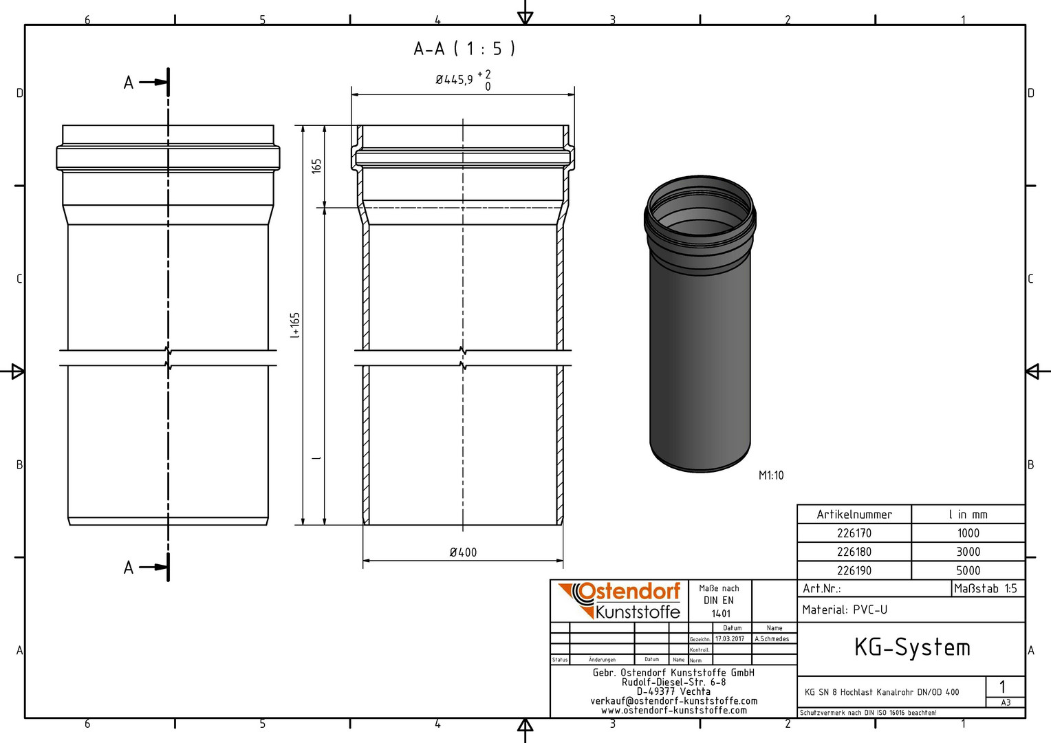 Ostendorf KG Rohr SN 8 Coex EM DN/OD 400, 3000 mm, mit Muffe
