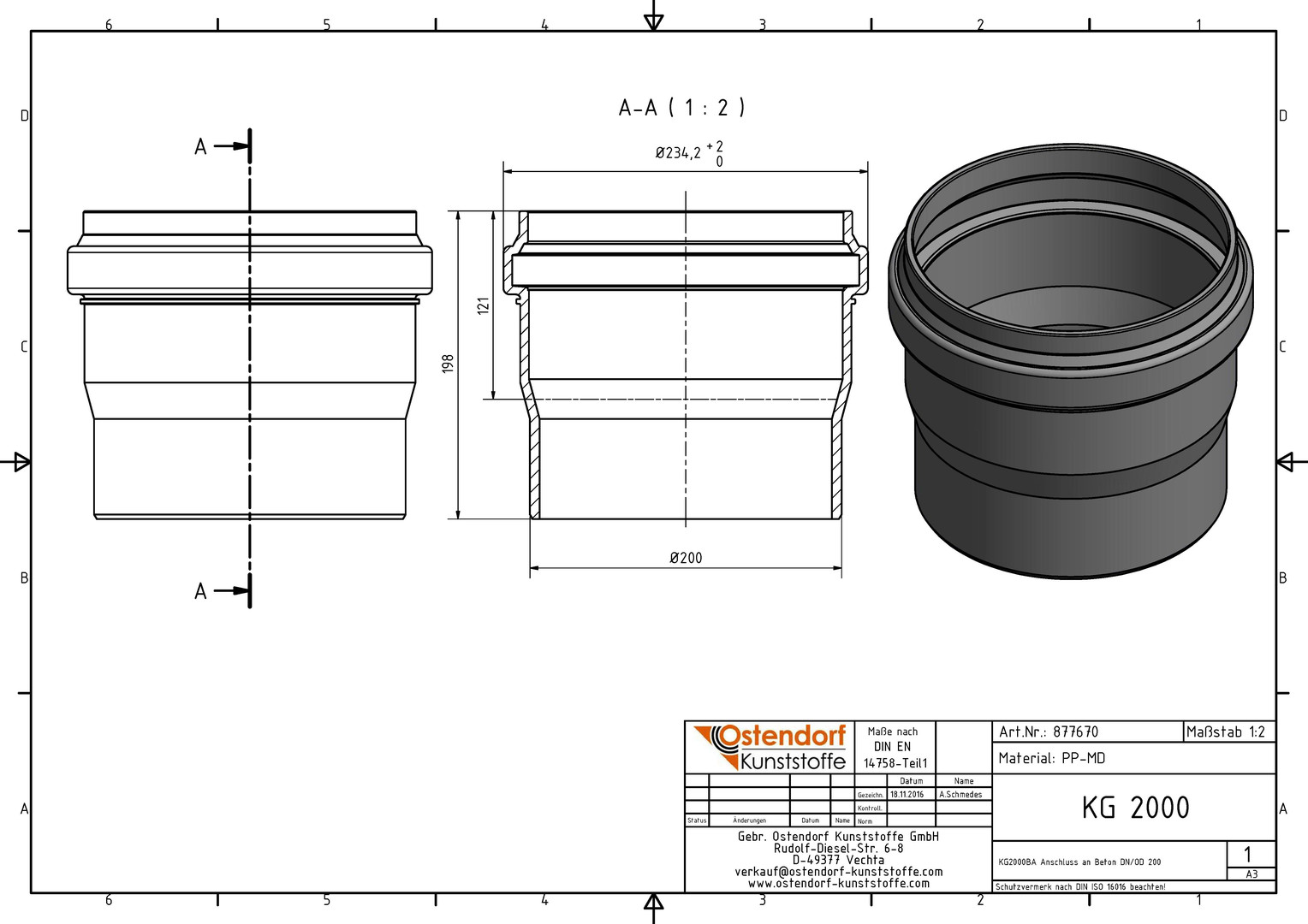 Ostendorf KG2000 Anschluss-Stutzen BA DN/OD 200, an Beton