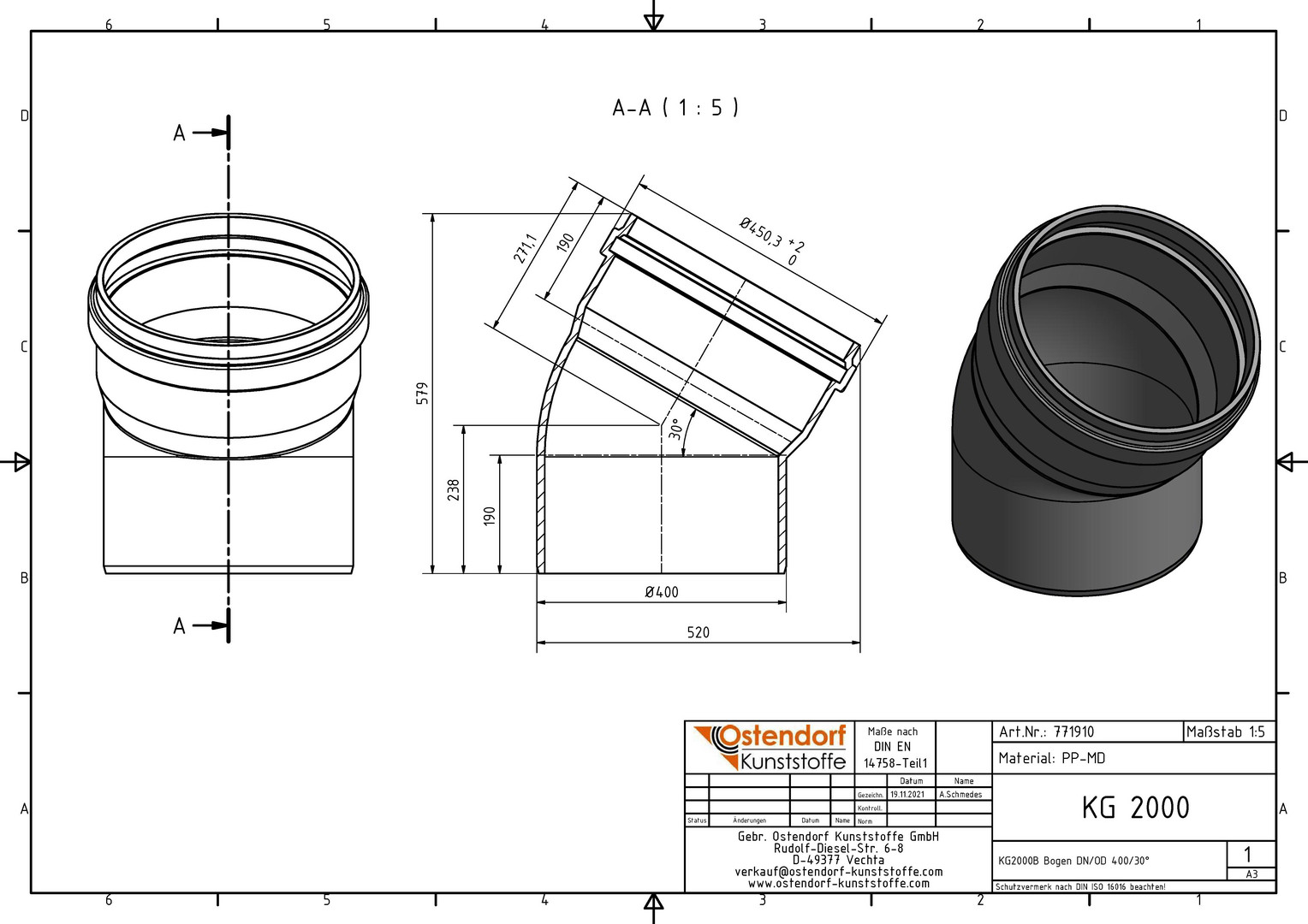 Ostendorf KG2000 Bogen B DN/OD 400, 30Grad