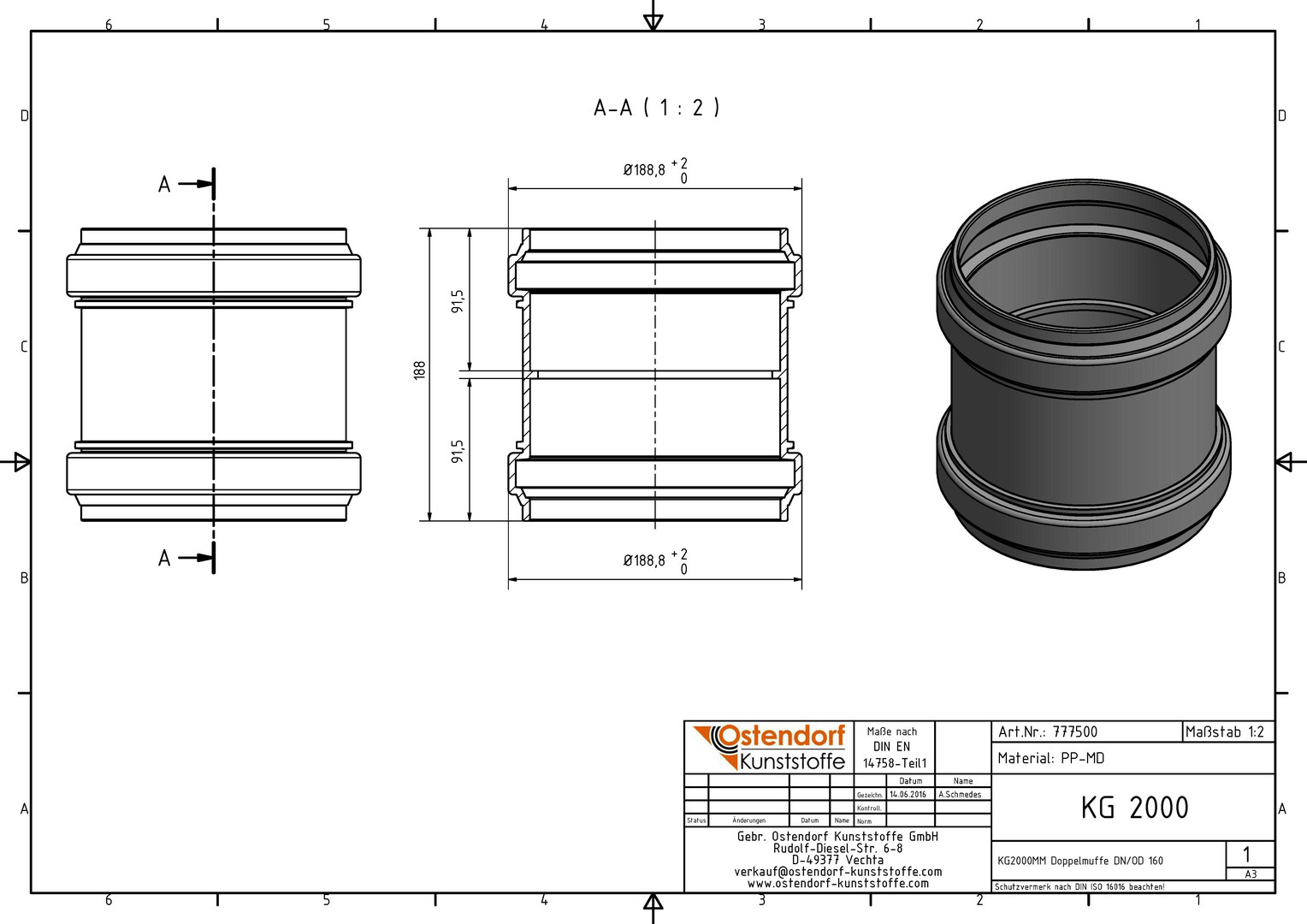 Ostendorf KG2000 Doppelmuffe MM DN/OD 160
