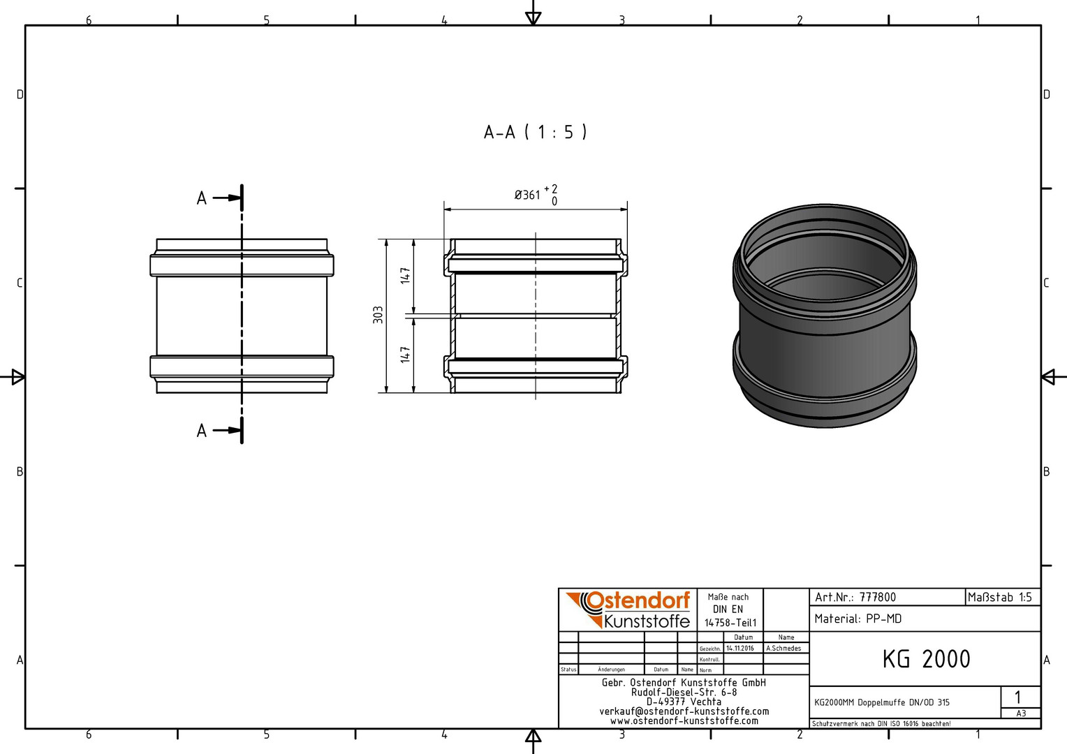 Ostendorf KG2000 Doppelmuffe MM DN/OD 315