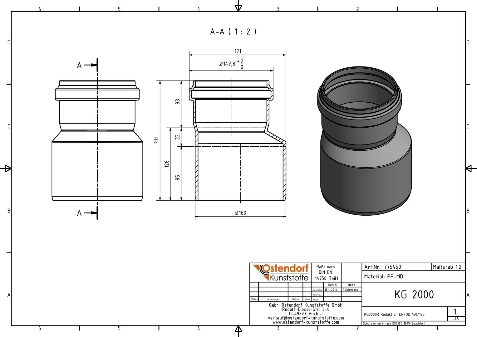 Ostendorf KG2000 Reduktion R DN/OD 160/125, exzentrisch