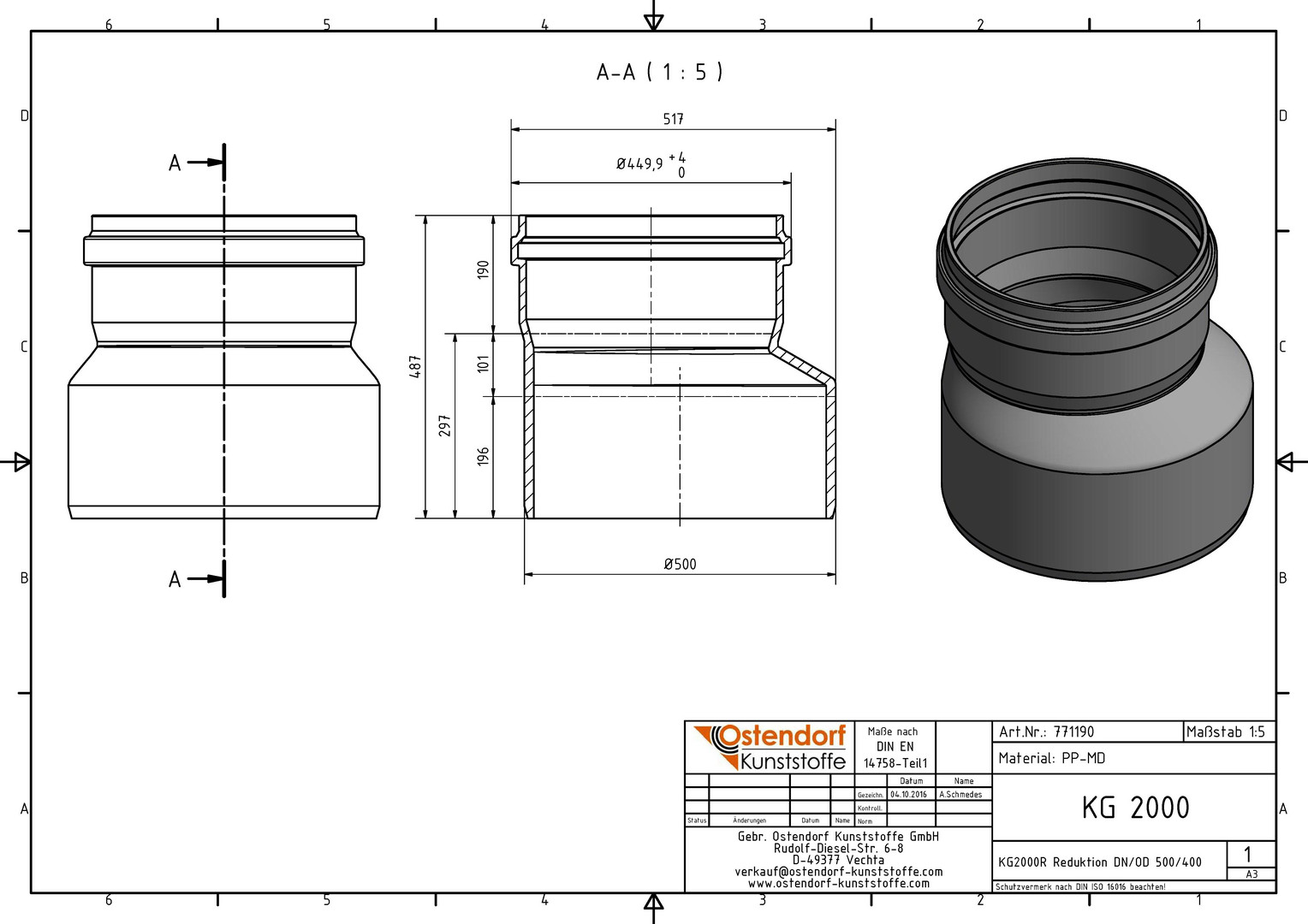 Ostendorf KG2000 Reduktion R DN/OD 500/400, exzentrisch