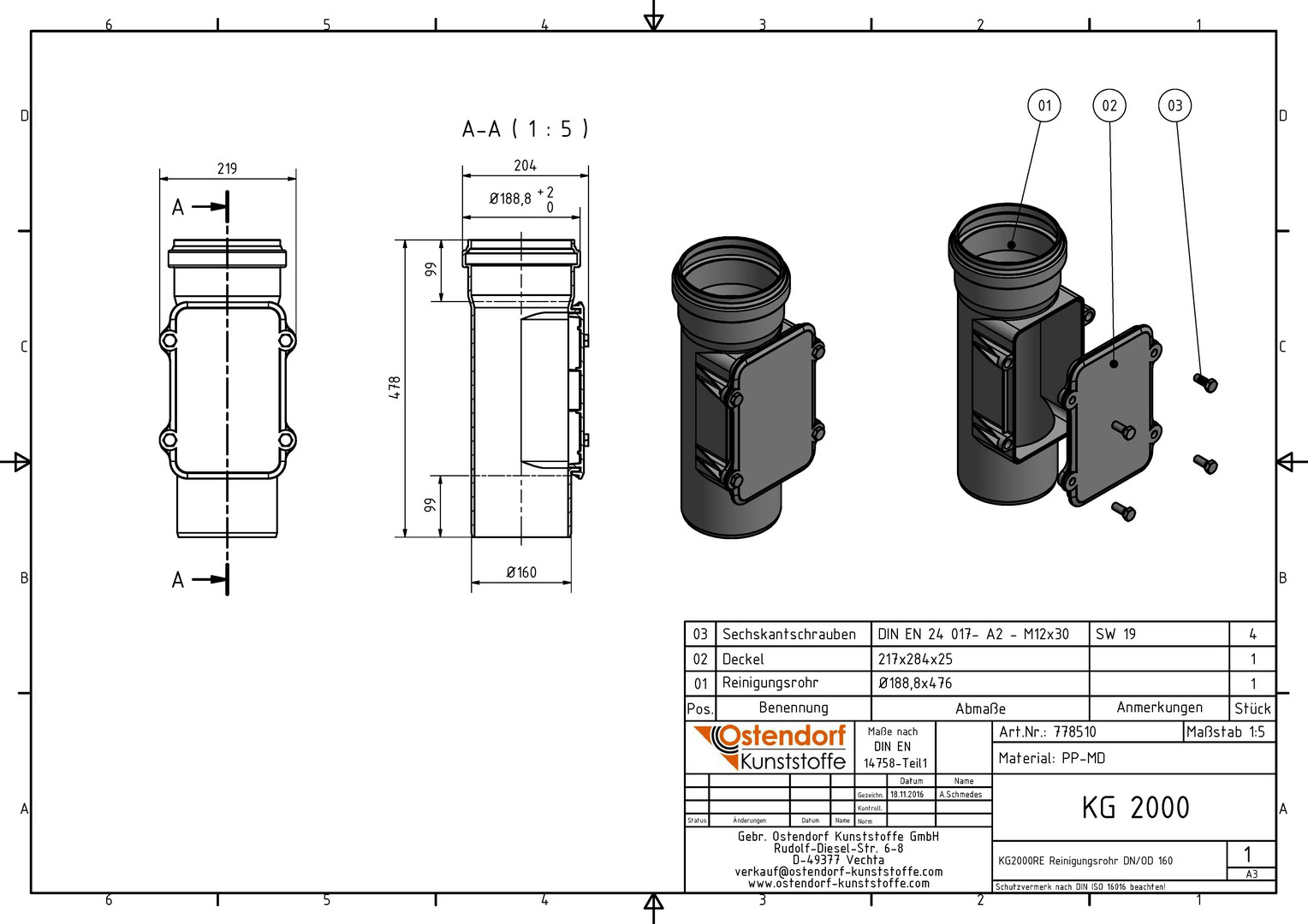 Ostendorf KG2000 Reinigungsrohr RE DN/OD 160