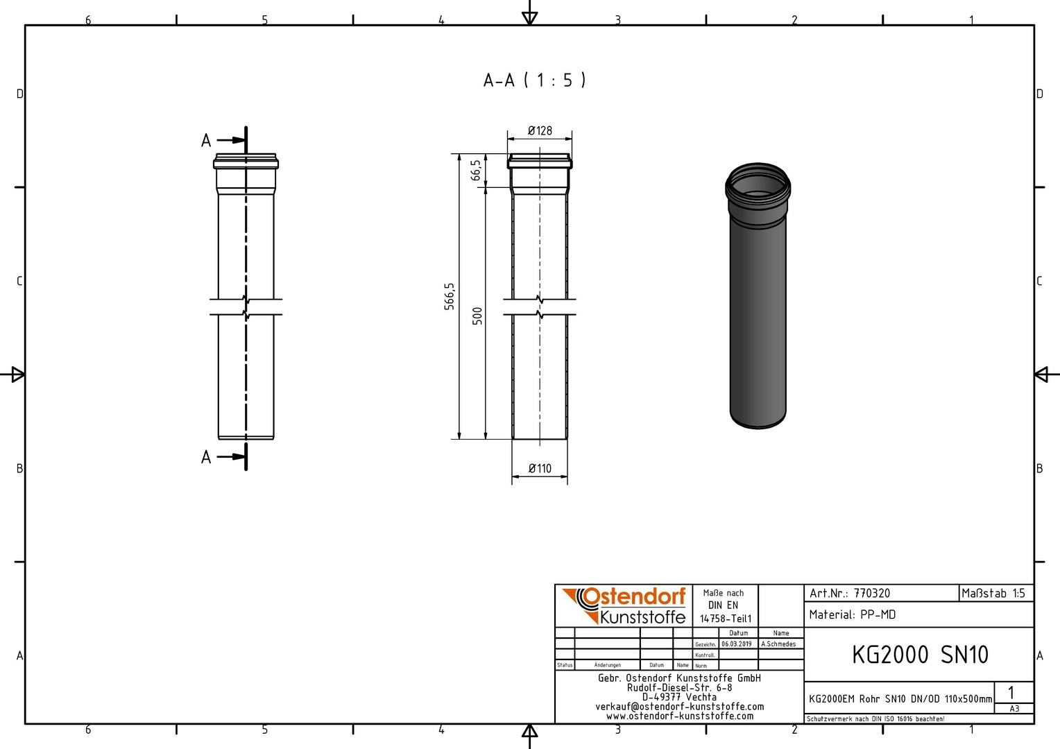 Ostendorf KG2000 Rohr SN 10 EM DN/OD 110, 500 mm, mit Muffe