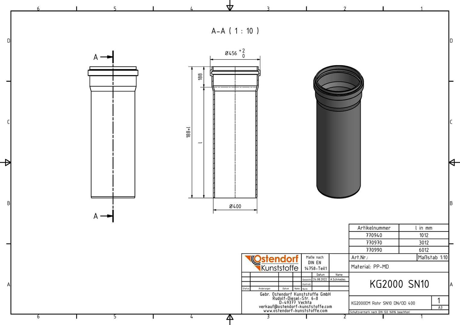 Ostendorf KG2000 Rohr SN 10 EM DN/OD 400, 3000 mm, mit Muffe