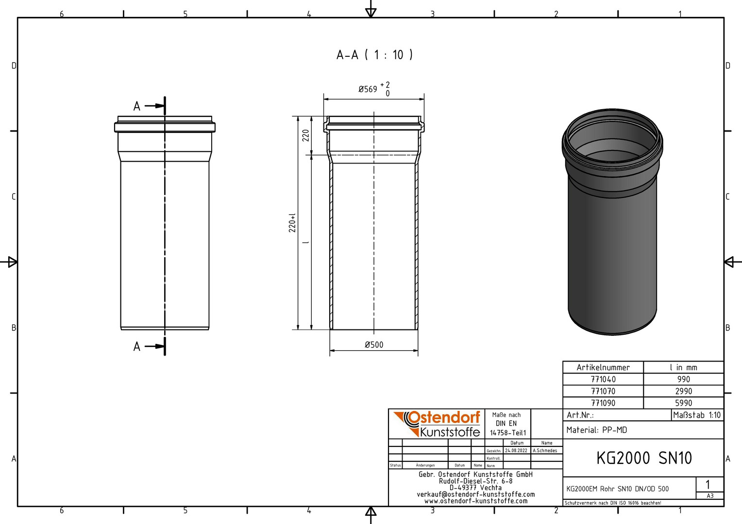 Ostendorf KG2000 Rohr SN 10 EM DN/OD 500, 3000 mm, mit Muffe