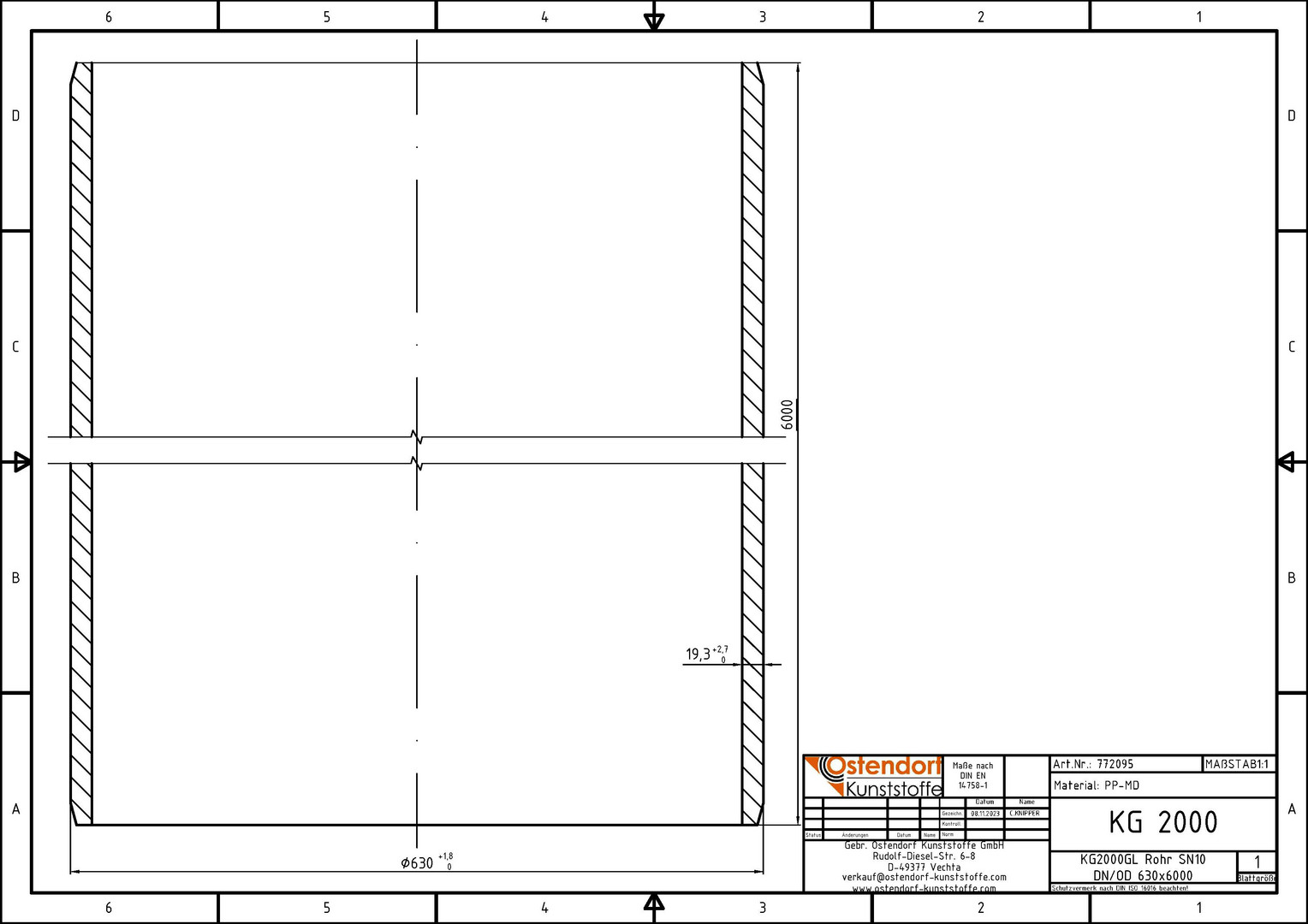 Ostendorf KG2000 Rohr SN 10 EM DN/OD 630, 6000 mm, ohne Muffe, verschweißbar