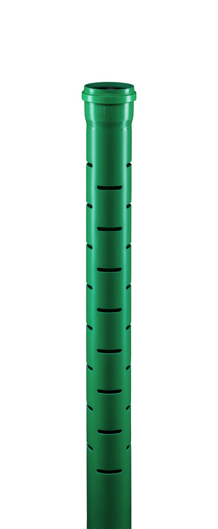 3 Schlitzreihen, Schlitzbreite 10 mm, Schlitzlänge 55 mm, Schlitzabstand pro Reihe 100 mm, 30 Schlitze/m, Wassereintrittsfläche >150 (165) cm2/m, Wassereintrittsfläche 20,3 cm2/m, die Wassereintrittsöffnungen sind am Rohrscheitel gleichmäßig über einen Bereich von max. 220° angeordnet