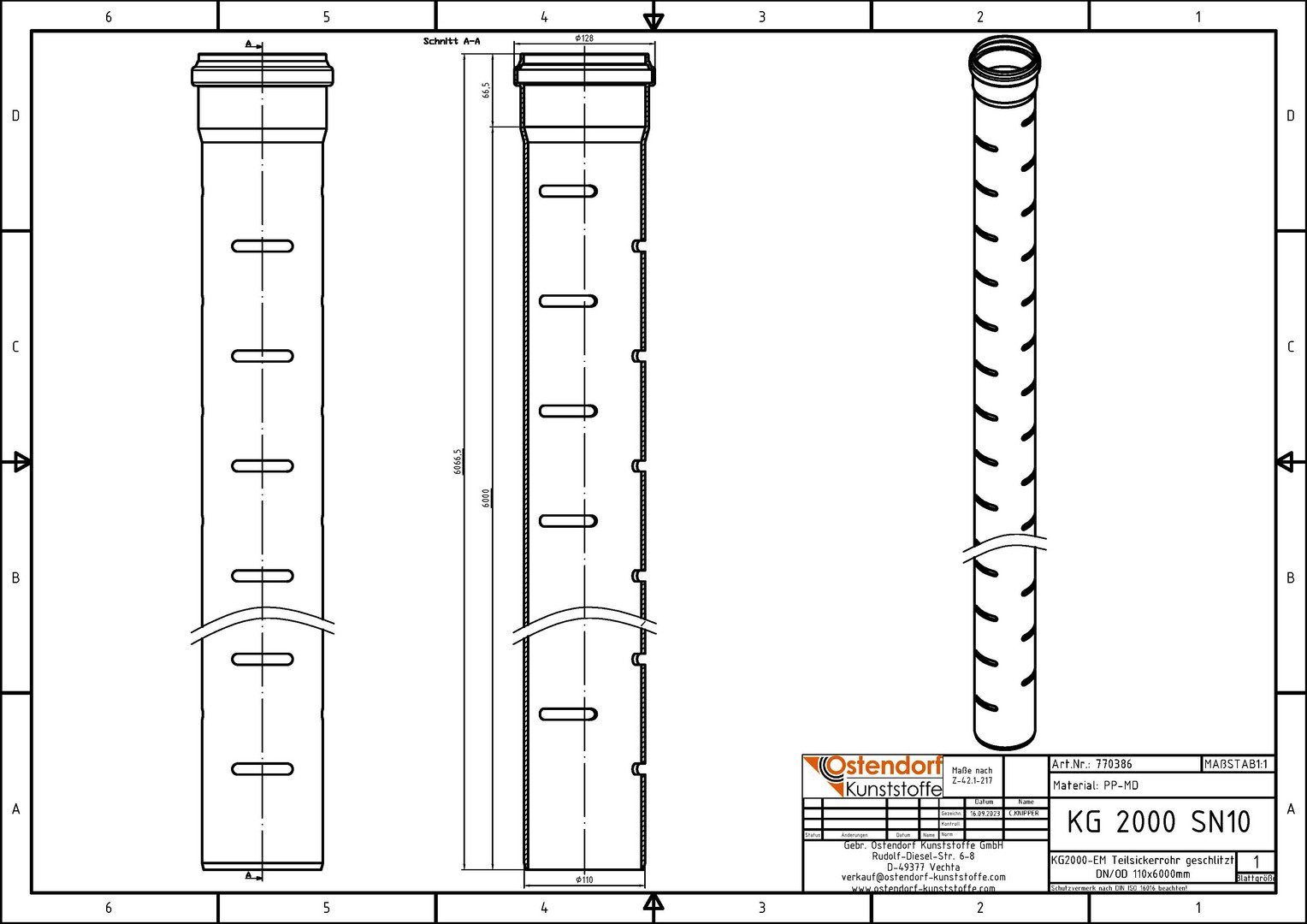 Ostendorf KG2000 Teilsickerrohr SN 10 EM DN/OD 110, 6000 mm, geschlitzt, 165cm2/m